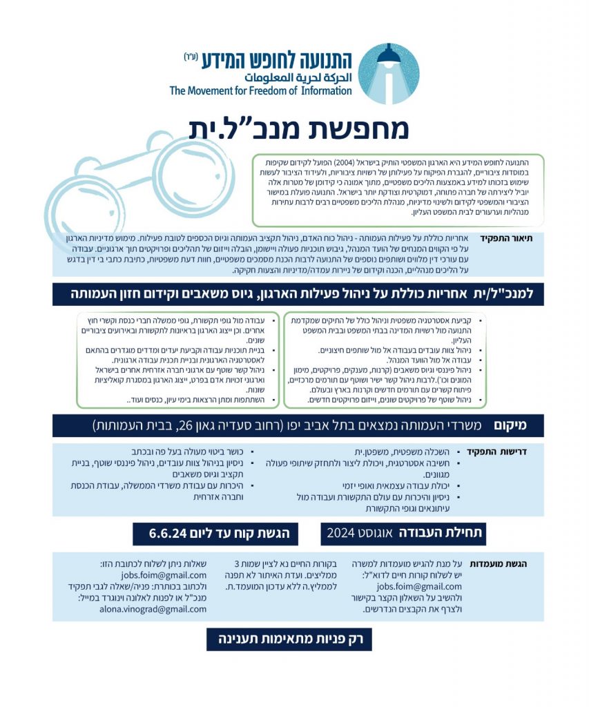 התנועה לחופש המידע (ע״ר) מחפשת מנכ״ל/ית