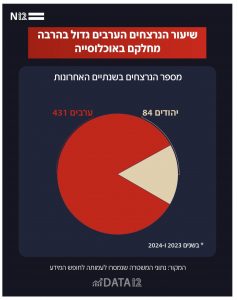בקשת מידע של התנועה לחופש המידע חשפה את נתוני המשטרה – בשנתיים האחרונות (2023 ו-2024) נרצחו 582 בני אדם, עלייה של 94% לעומת השנתיים שקודם לכן. המצב מדאיג במיוחד בחברה הערבית. 431 אזרחים ערבים נרצחו בשנתיים האחרונות, שהם כ-74% מכלל הנרצחים באותה התקופה, שיעור גבוה בהרבה מחלקם באוכלוסייה, שעומד על 21%. היחס בין שיעור מעשי הרצח בקרב ערבים למעשי הרצח בקרב יהודים נמצא בעלייה עקבית של יותר מעשור.