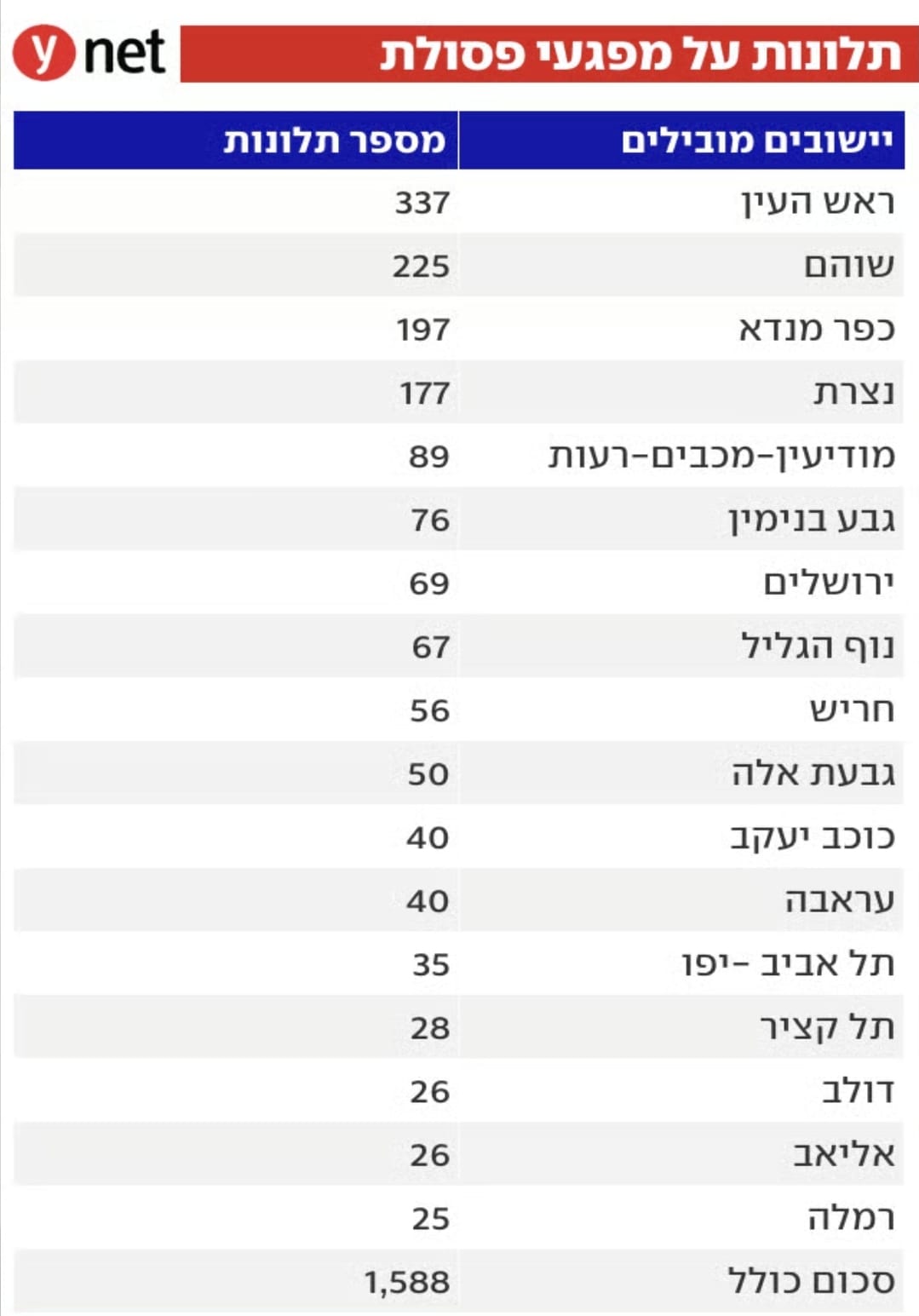 דיווחים על מפגעים סביבתיים לפי יישובים